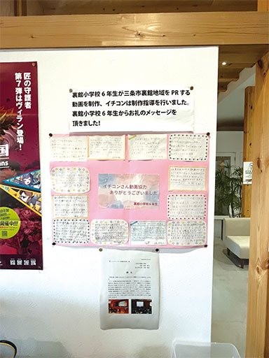 掲載とご紹介の許可もいただいたため、裏館小学校6年生の皆さんの直筆メッセージを、燕三条Gスクエアのシェアラウンジに掲示しております。コワーキングスペースやプリントショップもございますので、ご利用の際やお近くにお越しの際は、ぜひお立ち寄りのうえご覧ください。