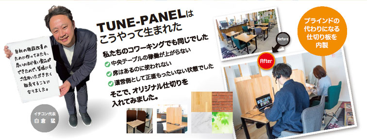 このたび、イチコンオリジナルの間仕切り製品「TUNE-PANEL(チューンパネル)」が誕生しました。