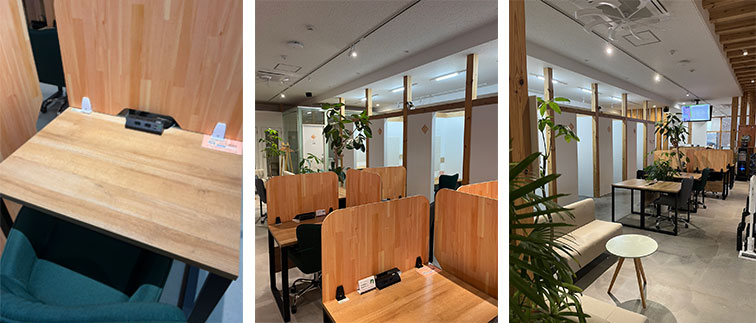 そこで、ブラインドの代わりになる仕切り板を内製し、実際に設置してみました。 すると、空間の使われ方が変わり、オープン席の稼働が向上しました。